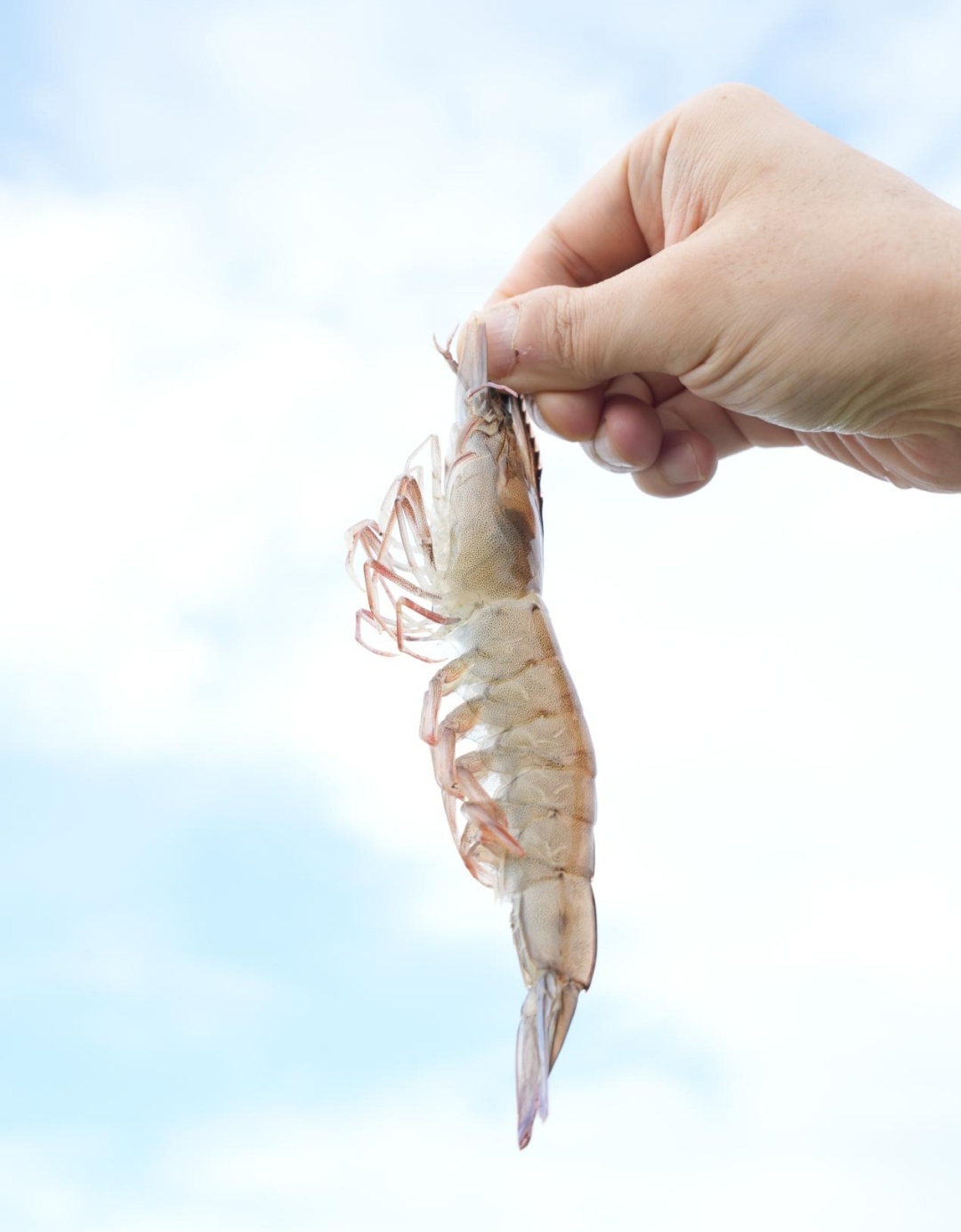 阳光下,通威清水虾通体透亮,虾线洁净。